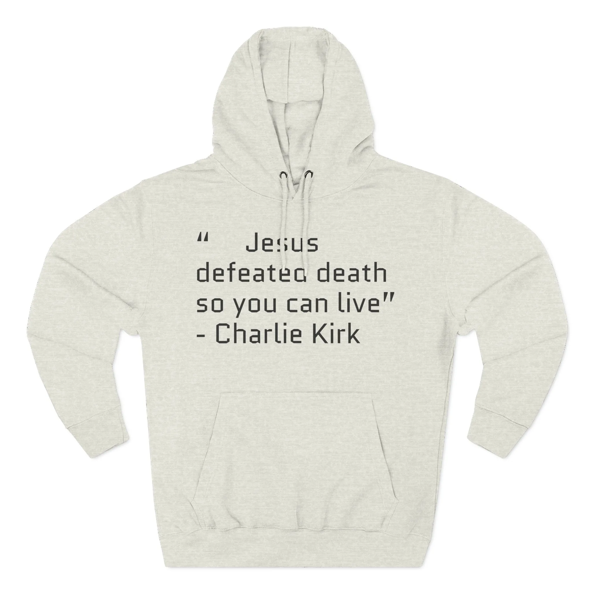 Charlie Kirk Memories – Inspirational Unisex Hoodie: ‘Jesus Defeated Death’ Quote, Christian Faith Merchandise, Gift for Believers, Religious Apparel Casual Classic